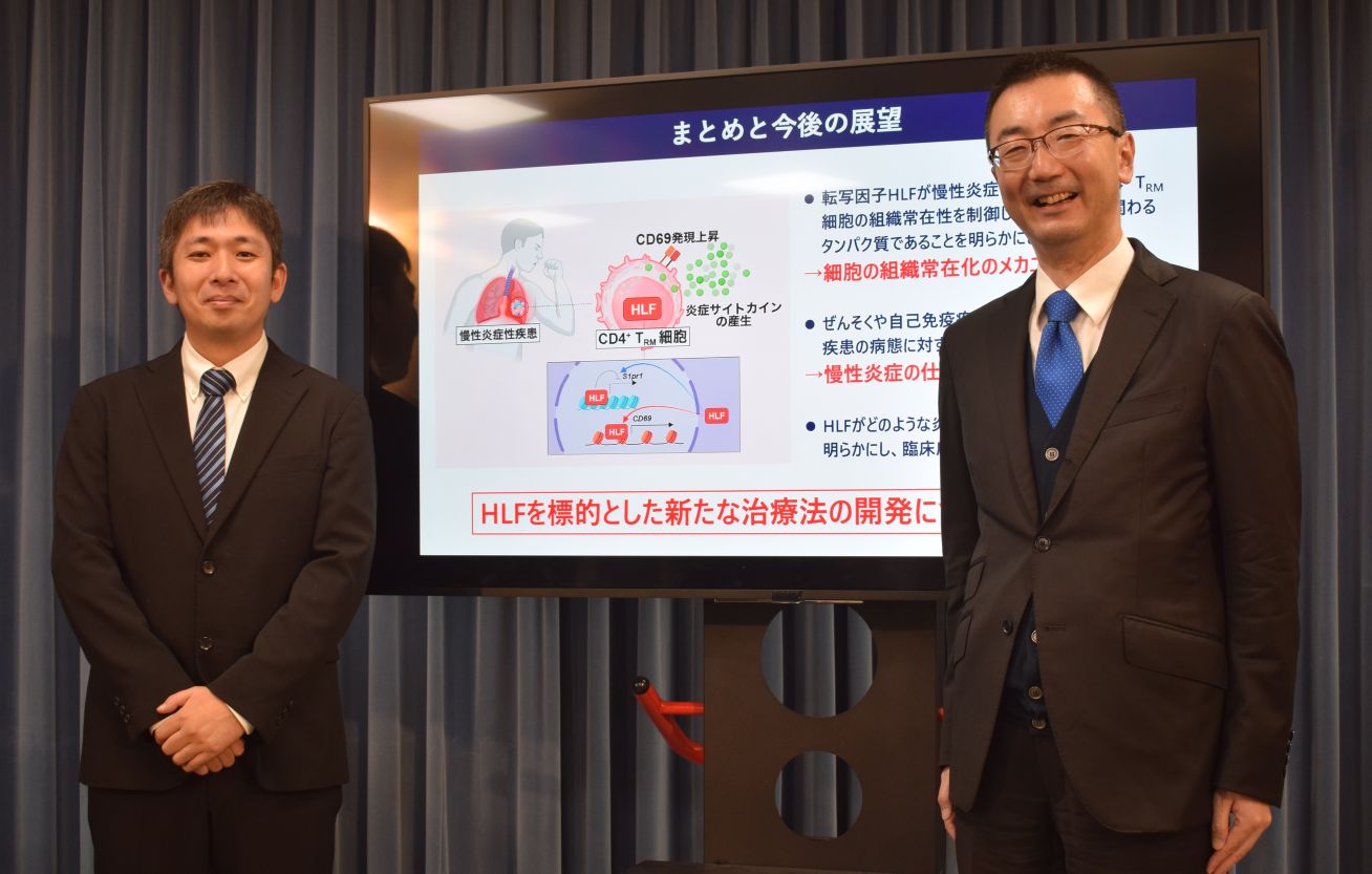 千葉大学大学院医学研究院の木内政宏助教と平原潔教授らの研究グループは、組織常在性記憶CD4陽性T細胞が肺や腸などの組織に長期間とどまるメカニズムと、炎症性サイトカインの持続的な産生は、遺伝子の働きを調節するタンパク質である転写因子HLFによって制御されていることを明らかにした。アトピー性皮膚炎、食物アレルギー、花粉症など、臓器特異的な炎症性疾患の解明と新しい治療法の開発につながる成果だ。Scienceに掲載された。平原教授は「HLFがどのような炎症シグナルで誘導されるのかを明らかにして、臨床応用や創薬につなげたい」と話す。