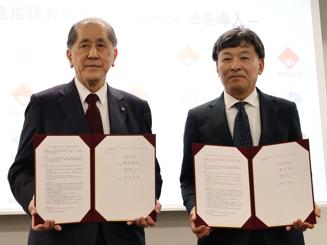 早稲田大学(田中愛治総長)と静岡市(難波喬司市長)は3月26日、市民の意見をより効果的に市政へ反映させることを目的とした共同研究を開始すると発表した。早大と早大ベンチャーのVETAで研究を進めている「VE法(Value Elicitation法)」を静岡市の市民意識調査に導入することで市民の潜在的な価値観の把握を目指す。